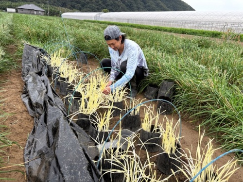 50アールの畑で黄ニラを作っています。