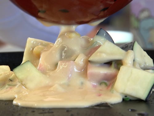 千両なすがゴロゴロッと入ったお好み焼き、上手にできるかな?
