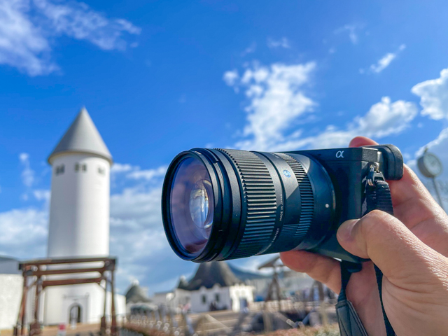 オフの外出時にはミラーレスカメラを持ち歩きます。