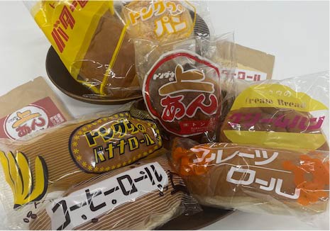 地元に愛され続けるパン『トングウ』。パンの種類はなんと約135種!!135種の中でも特に人気の『上あん(油パン)』と『バターロール(枕パン)』は、創業当時のまま守り続けてきた自家製の『こしあん』を使用!