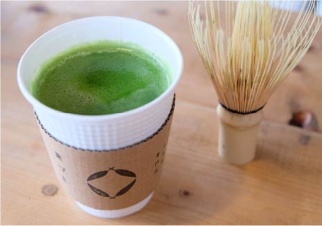 岡山市田中の雑貨店アクシスナーフ中庭にある『日本茶専門店葉づき』岡山県最高位の茶師八段が厳選・ブレンドした十数種類の茶葉を販売!人気商品の茶せんで作る『抹茶ラテ』は、京都宇治抹茶を贅沢に使用し、濃厚な旨みを楽しめる本格抹茶ラテになっております!