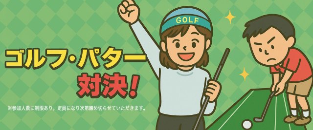 日曜あさ6時15分放送『SUNDAYスマイルGOLF』にも出演しているゴルフ大好きの新田アナ(スコア80)とパター対決!