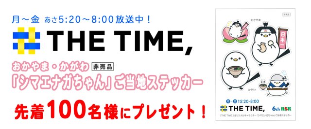 さらに抽選会にご参加いただいた方には『THE TIME』でおなじみの「シマエナガちゃん」おかやま・かがわ限定ご当地デザインステッカー(非売品)を先着100名様にプレゼント!