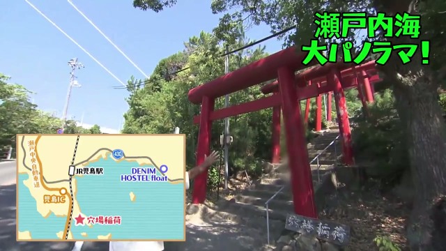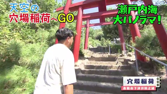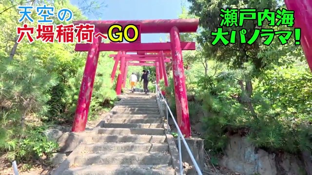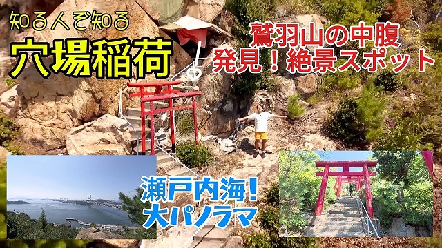 鷲羽山のハイキングコースの途中に現れる、鮮やかな朱色の鳥居。ここが、「穴場稲荷」への入り口です。