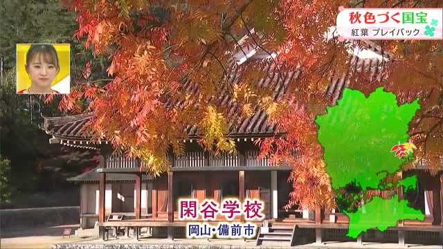 国宝の講堂で知られる旧閑谷学校は、歴史的建造物と紅葉の調和が美しいスポットです。