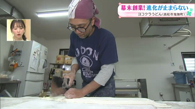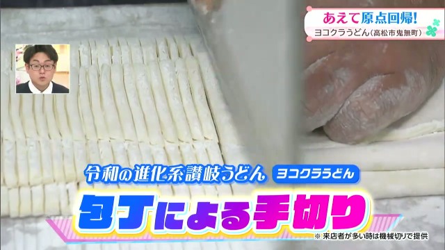 ヨコクラうどん・・・多くの店では効率を重視して機械を用いて麺を切っていますが、こちらでは手動で麺を切ってます。
