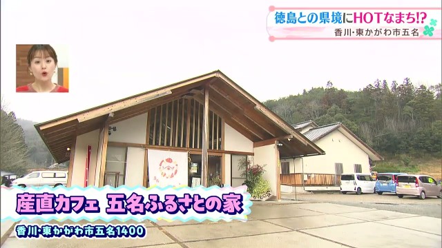 山の中に突如として現れるおしゃれな建物。五名のホットスポットの一つ、「産直カフェ 五名ふるさとの家」です。