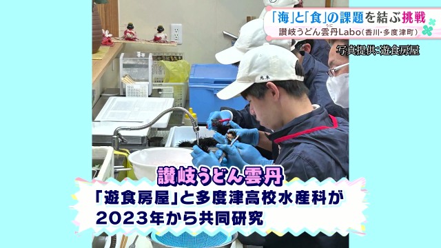 地元の高校生や先生、漁師さんたちが協力し、本来捨てられるはずのうどんをウニのエサとして再活用する試験が始まりました。