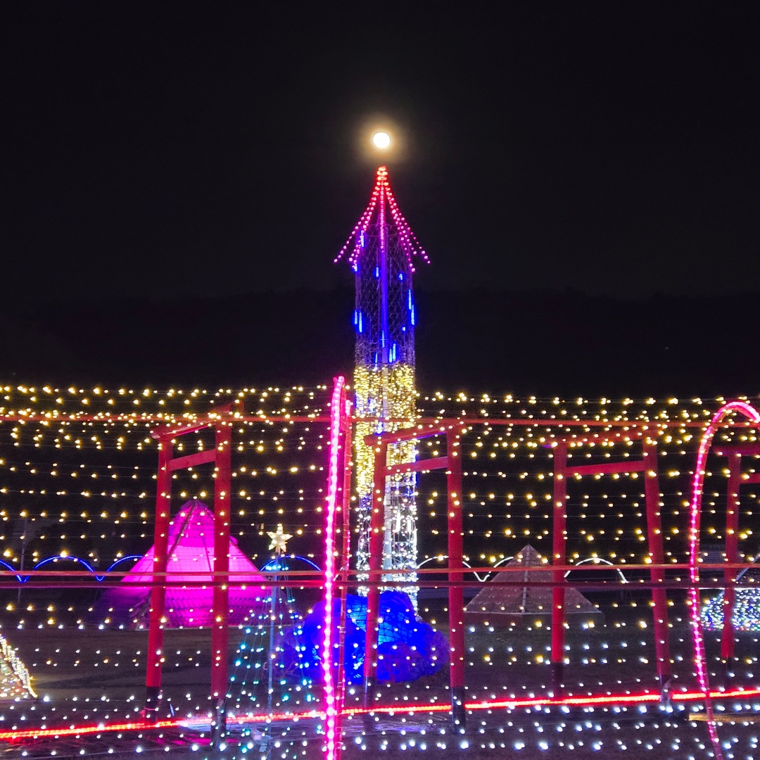 月とイルミネーションの共演