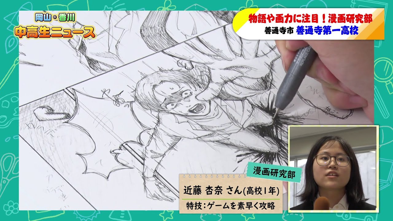 今回は、善通寺市にある善通寺第一高校の漫画研究部について紹介します!